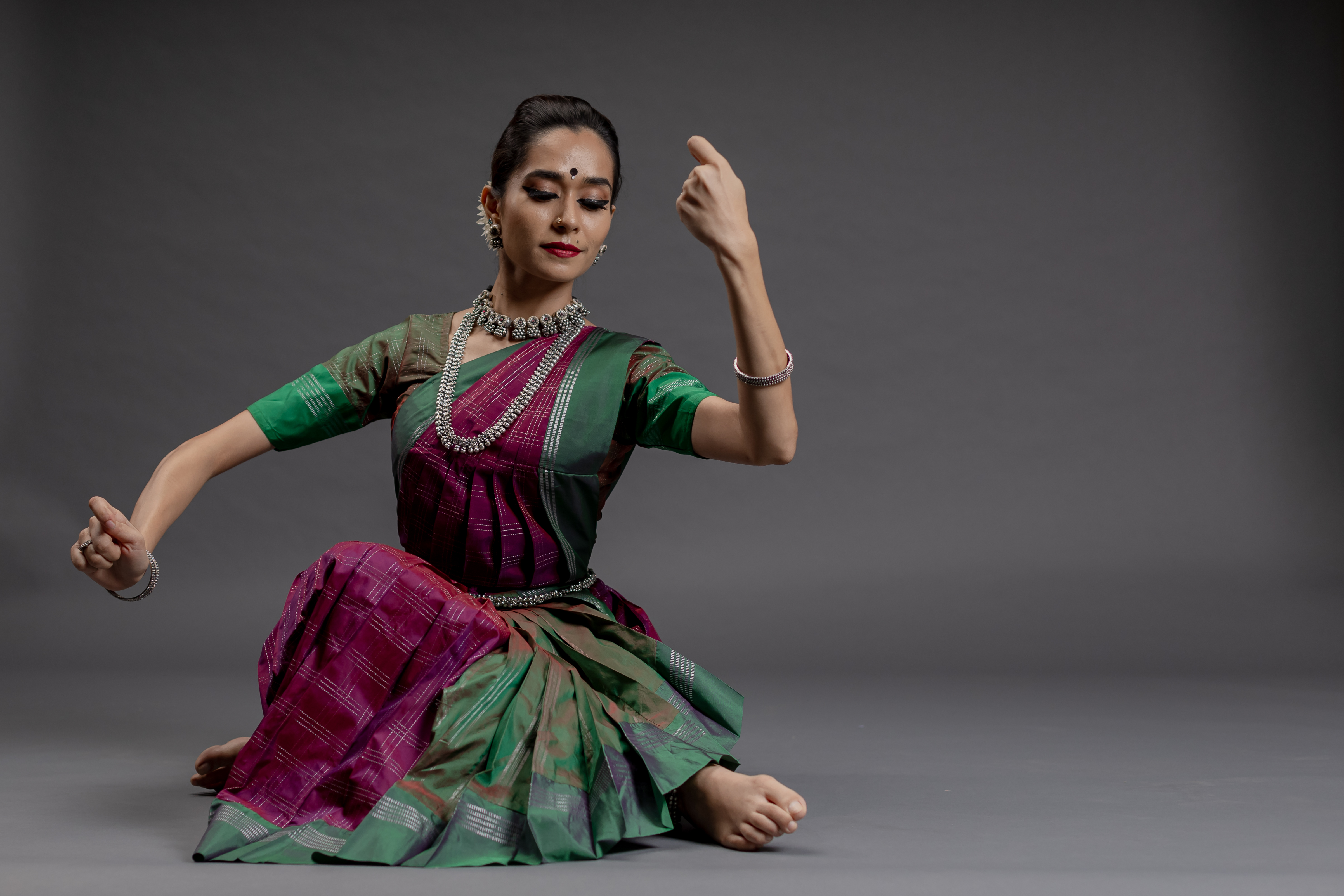 Besides performing, Sushmitha founded Vivartana - the art studio in 2017, where she aims at imparting her knowledge of Bharatanatyam to the masses and take our traditional arts forward, relevantly, to the generations to come. She also pioneered the ‘Adavu Meet Up’ in Bangalore and now continues to in Chennai, aiming to bring the dance community together. She has presented several of her solo and group choreographies in India and abroad, through the pandemic and is currently working on several new bodies of work, hoping to contribute a few droplets to this wonderful ocean of art! Besides dancing, Sushmitha is a fitness enthusiast and is also a professional Make up Artist, exclusively for classical dance and brings her unique touch to each client.